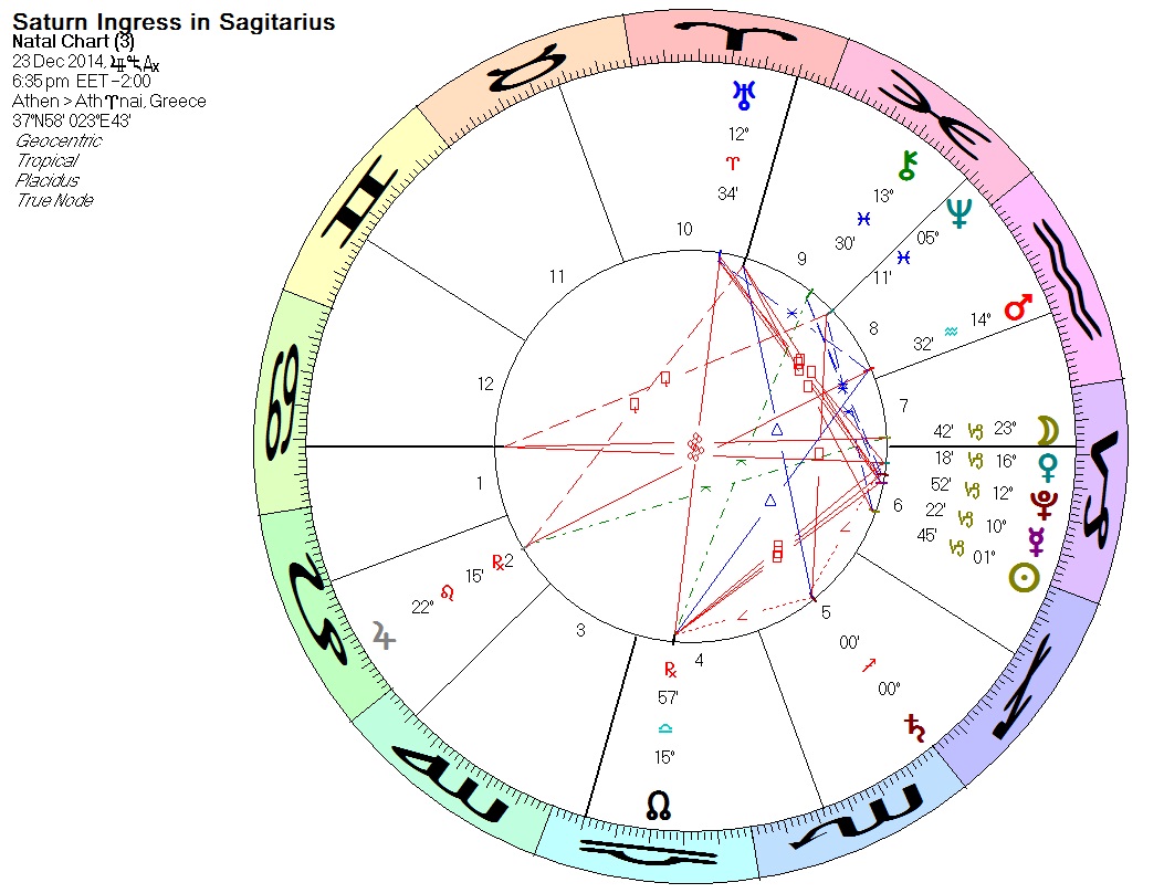 Μία σημαντική είσοδος βρίσκεται μπροστά μας παραμονές Χριστουγέννων. Ο Κρόνος εισέρχεται στο ζώδιο του Τοξότη όπου θα καθίσει μέχρι τα μέσα Ιουνίου του 2015, θα επιστρέψει στη συνέχεια στο Σκορπιό και θα μπει οριστικά ξανά στον Τοξότη στα μέσα Σεπτεμβρίου.